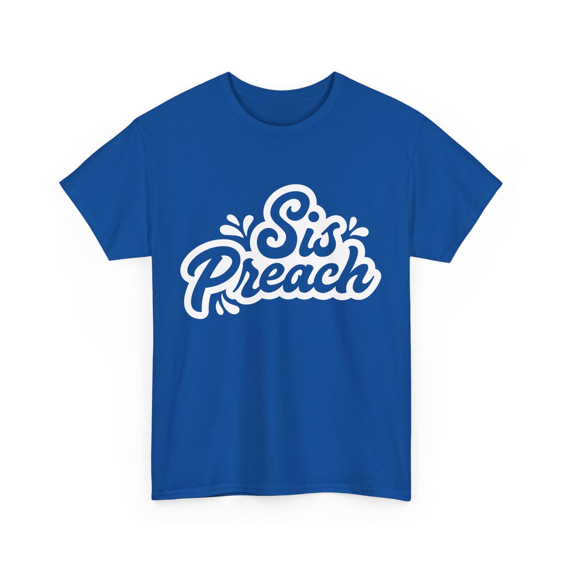 The front of the shirt features the phrase "Sis Preach" in bold, eye-catching letters, making a statement wherever you go. Whether you're sharing your faith or simply celebrating your strength, this tee is the perfect way to make your voice heard.